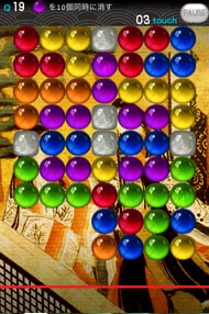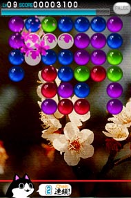 画面上からわき出る華玉をひたすらに消す! ゲームスタート時はゆったりと現れる華玉 ですがレベルが上がるにつれて出現速度が速まります。集中力がとぎれたその瞬間の レベルと得点はいかに?